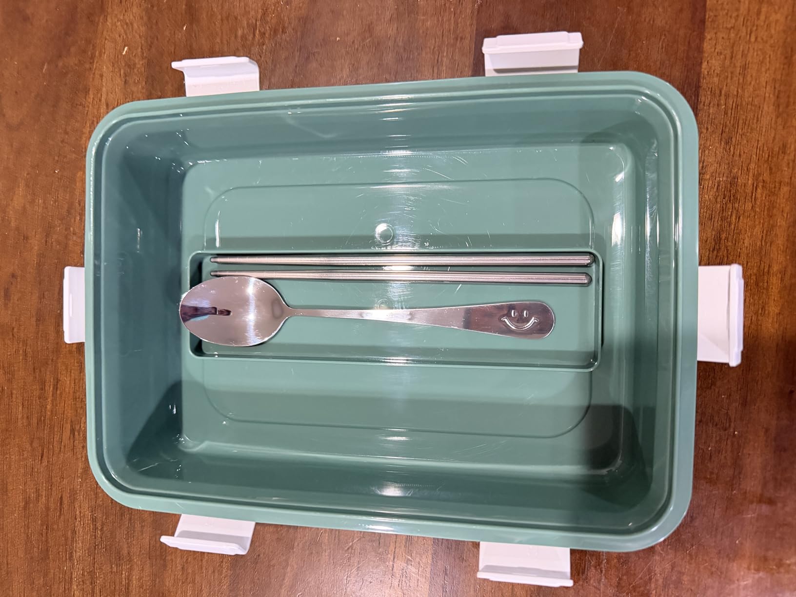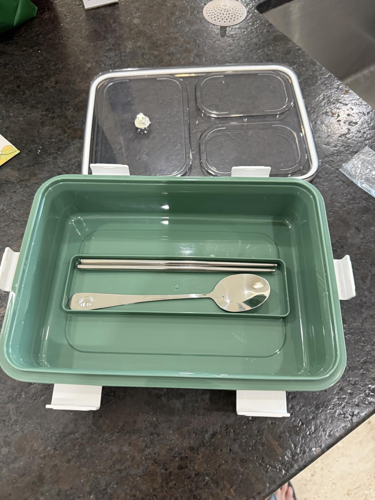 I like this box - it’s not overly large, which means it’s easily packable. It’s also versatile for both lunch as well as snack-type use which is appreciated. Having 3 separate compartments as well as a slot for silverware (it even include some chopsticks) it’s pretty functional and versatile as well.