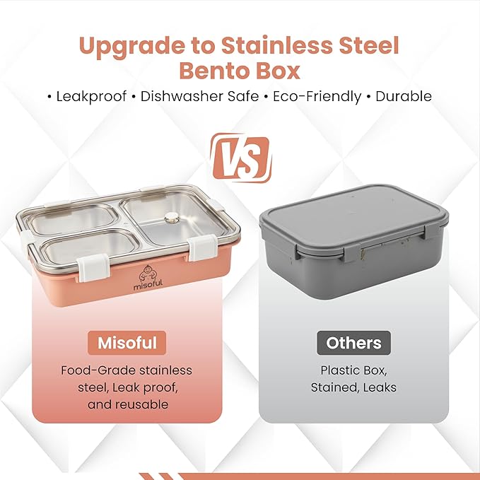 MICROWAVE-SAFE & BPA-FREE: Microwave safe and made from high-quality materials, this bento container is intended for teens and adults aged 13+ years. Suitable for work, gym, travel, and everyday meal prep. Detachable BPA-free plastic base